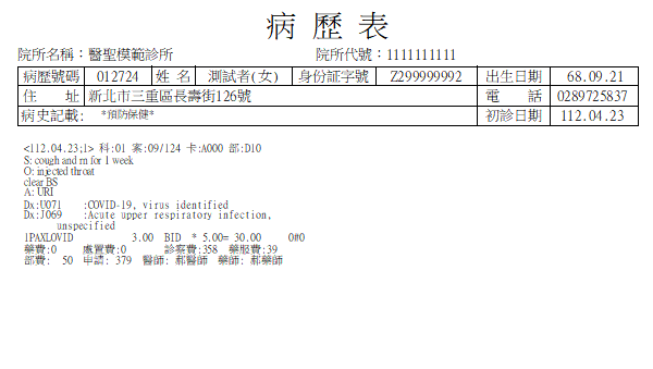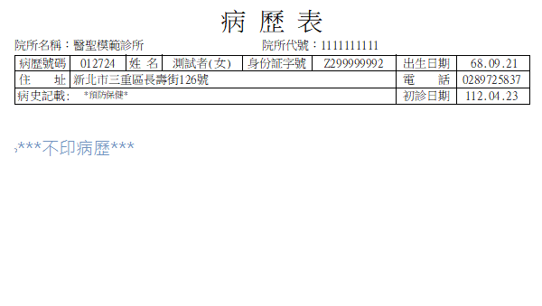 A4格式病歷表可否單印表頭[病患基本資料]