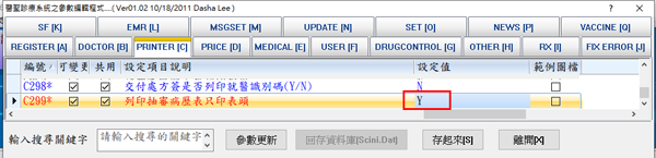 將右方設定值修改為「Y」(預設值為N),再按下「存起來」「離開」即可。