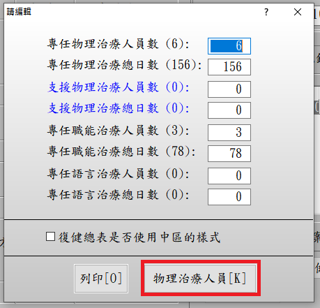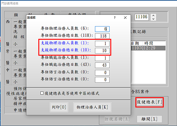 更版功能: 復健總表新增支援物理治療人員鍵入欄位及更新專案申報表列印格式