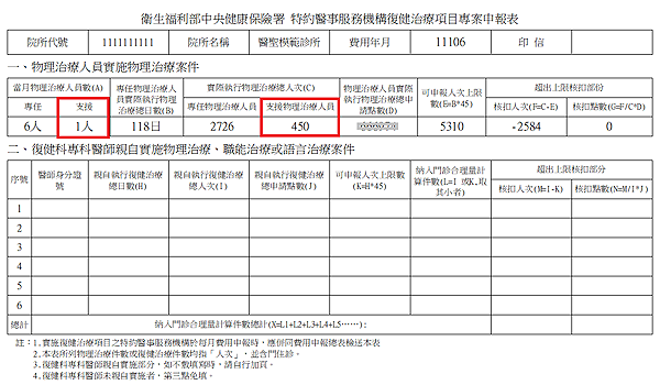 西醫基層復健治療項目專案申報表更新支援物理治療人員欄位