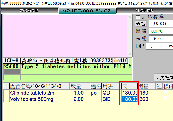 1. 處方醫令天數橺位輸入一次領取『總用藥日數』