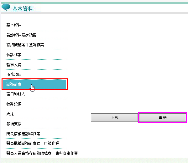 步驟二、點選「試辦計畫」功能,再點選「申請