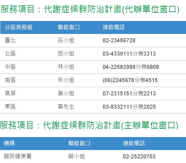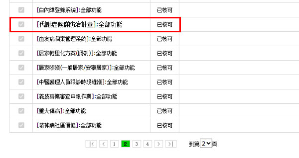 步驟三、儲存完成後,於服務項目列表畫面,即會出現「代謝症候群防治計畫」使用項目