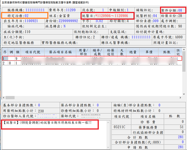 ↑↑↑檢查XML申報格式時,出現『08慢簽調劑的就醫日期不得與結束日期一樣』的提示訊息↑↑↑