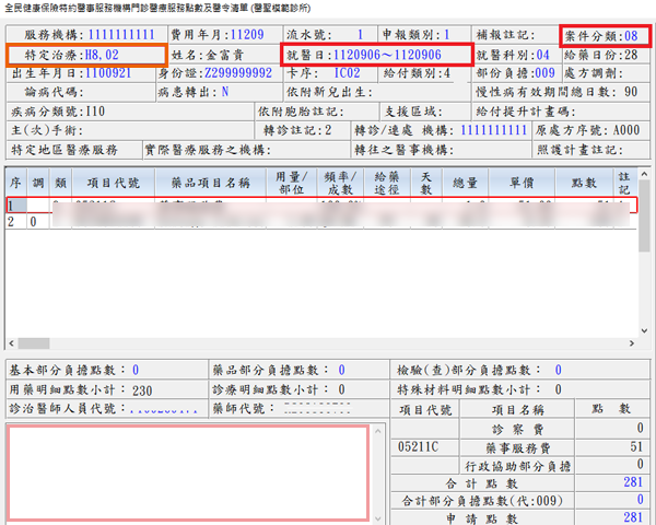 =>若是,請確認『特定治療』欄位(橘框處)是否有轉出 H8、HA~HD