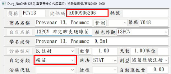 新增「長者肺炎鏈球菌疫苗」(13PCV)健保碼操作說明