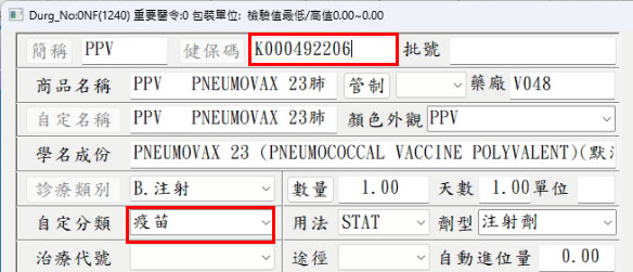新增「長者肺炎鏈球菌疫苗」(PPV)健保碼操作說明