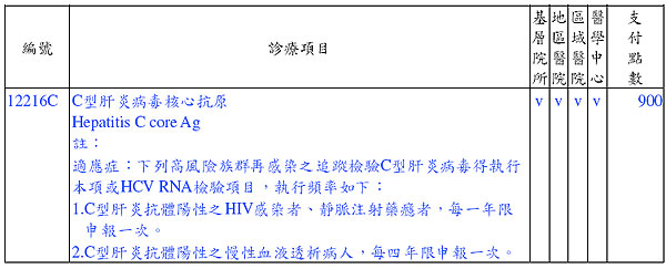 1.新增「血液及體液葡萄糖-餐後」(編號09140C,50點)、「C型肝炎病毒核心抗原」(編號12216C,900點)及「遊戲式聽力檢查」