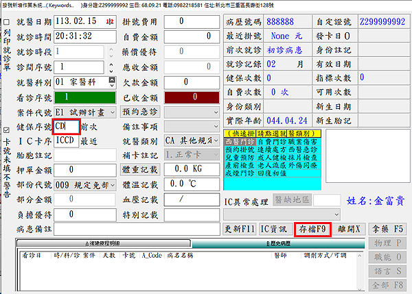 ● 於「F3診療作業」畫面下方按下『F12』或於『4藥品資料』新增醫令代碼