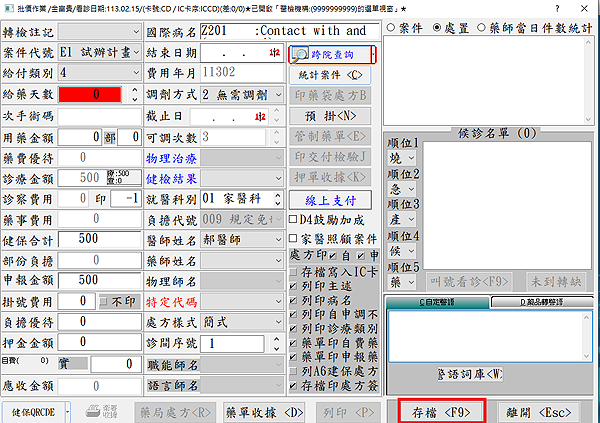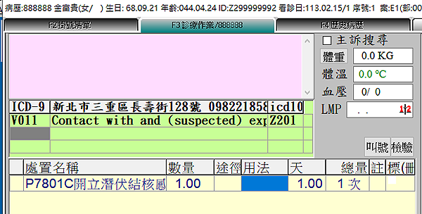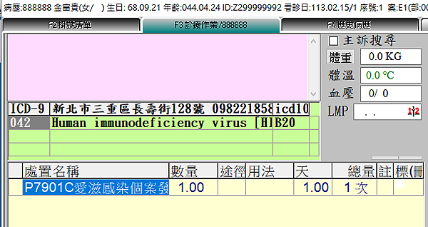 診療作業於『F3診療作業』畫面,診斷及處置欄位輸入計畫對應主診斷及醫令代碼