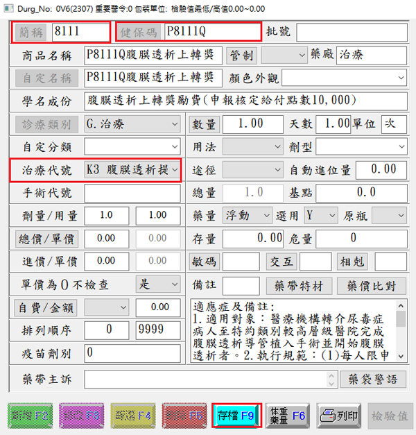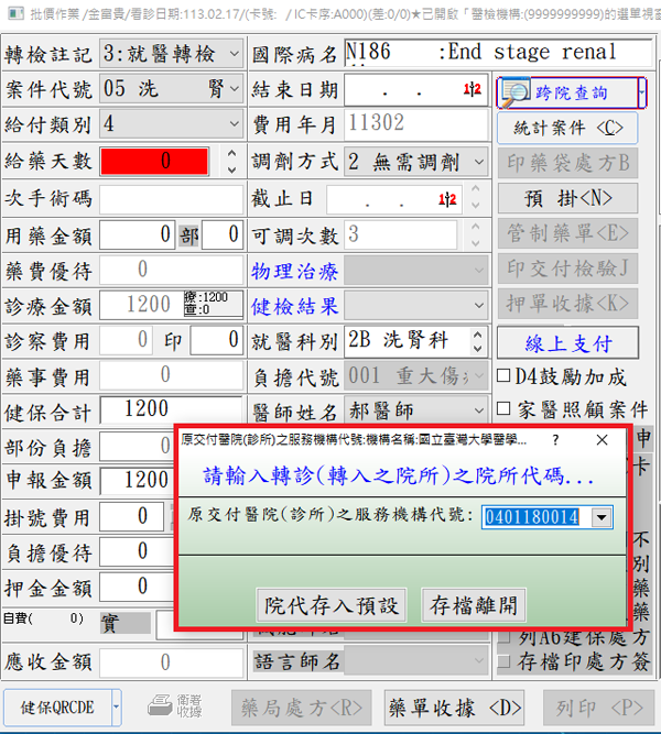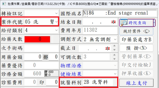 批價作業:系統會自動轉為『05 洗腎案件』,按下『存檔F9』即可