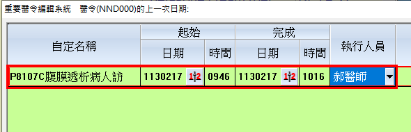 診療作業:處置輸入「P8107C」或「P8108C」時,開啟重要醫令編輯系統如下