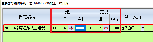 於「起始」(執行時間-起)及「完成」(執行時間-迄)日期欄內輸入轉診日期 / 時間0000 即可