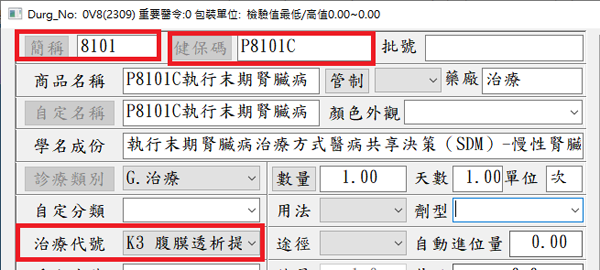 (1)『簡稱』輸入自定名稱,於『健保碼』輸入「P8101C」後按下『Enter』鍵即可帶出預設資料