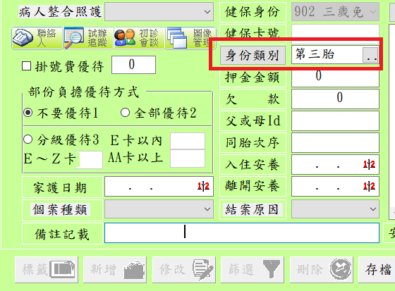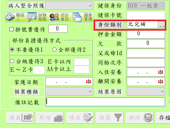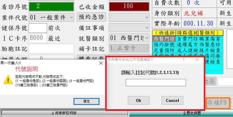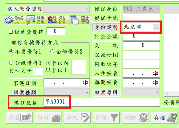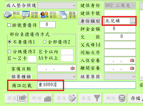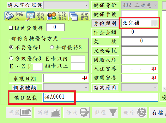 掛號作業:符合北市補助資格之兒童掛號存檔時,需要輸入身份註記