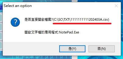 按下『是(Y)』→可轉出雙北市兒童醫療補助費用申報上傳CSV檔