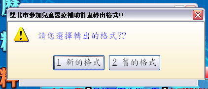 功能說明: 用戶可選擇轉出原匯入檔格式或新匯入檔格式(配合兒童醫療補助系統需求)