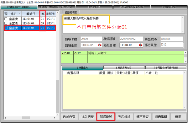 此項目內病歷資料明細未出現「01案件」即表示符合申報規定!