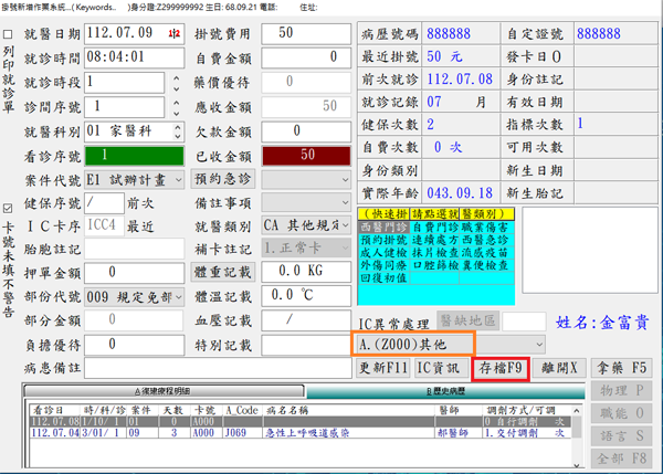 接著按下『存檔 F9』 完成即可。*其他醫令新增操作方式相同*