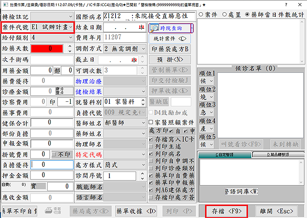 批價作業:按下『存檔F9』完成【本計畫採先申報符合支付標準後核付,因此申請時點數為0】