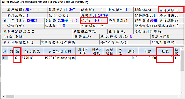 點選『癌症追蹤計劃』,於「IC異常處理」欄位點選『Z000 』,再按下『存檔F9』