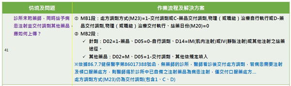 MB2 段:針劑: D02=1 藥品、 D05=0 自行調劑、