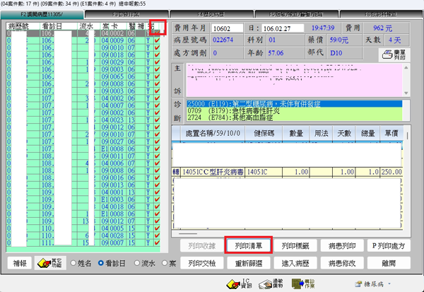 2. 於『診療項目』欄位輸入「14051」或「12185」(若出現詢問視窗點選'健保碼'選項)