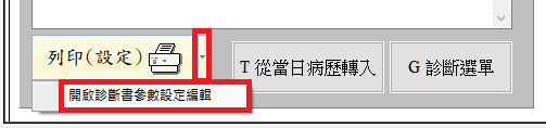 再移至「開啟診斷書參數設定編輯」按下即可出現「診斷證明書參數設定」編輯視窗