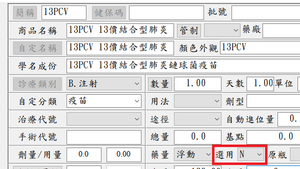 *整理完成,顯示(選用為Y)之現行使用疫苗選單,如下範例圖示*