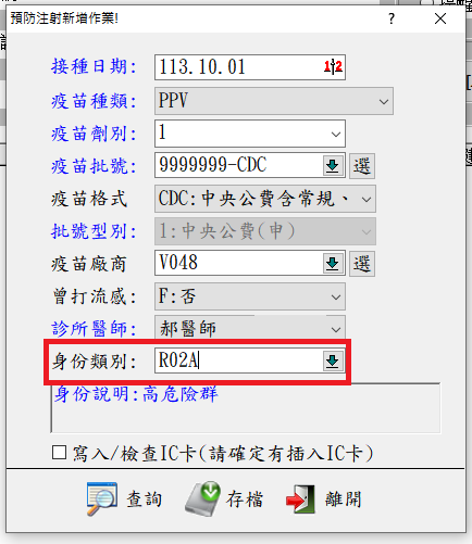 肺炎鏈球菌疫苗高風險接種者,身份別[R02A]如何選填
