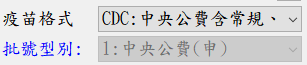 ├ 疾管署撥付疫苗,批號-CDC / 型別 1:中央公費