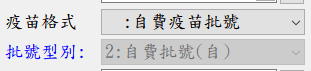├ 院所自購疫苗,批號不需加註記撥付來源 / 型別 2:自費