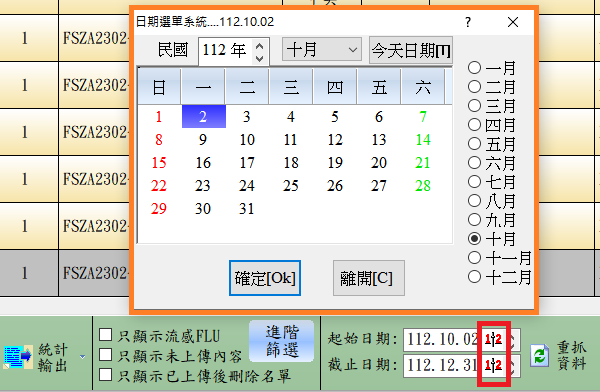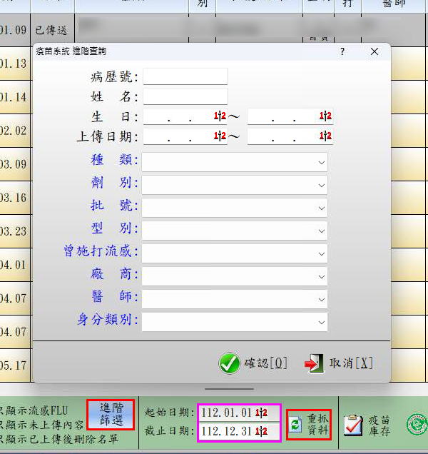 1. 設定欲進階篩選之日期區間(起始:YYYMMDD~截止:YYYMMDD)後,點選「重抓資料」