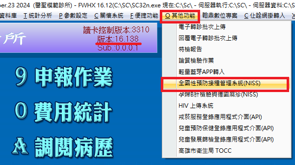 於醫聖多功能選項表「O 其他功能 > 全國性預防接種管理系統(NISS)」項目進入