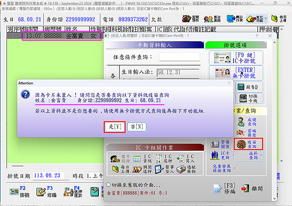 ● 有置入健保IC卡時,直接查詢持卡人的預防接種記錄~提供掛號前預查使用~