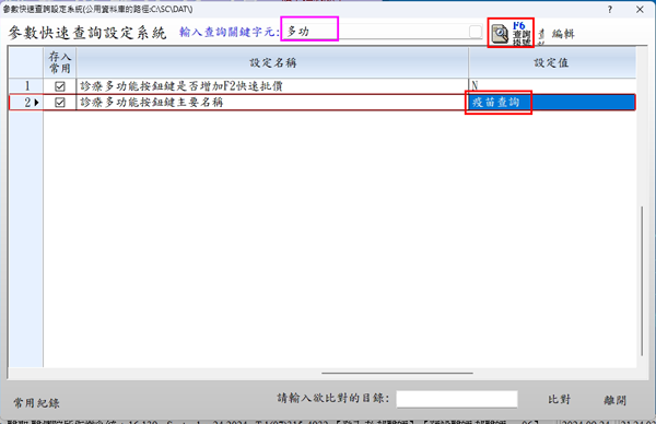 3. 於診療多功能按鈕鍵主要名稱右方設定值修改為「疫苗查詢」