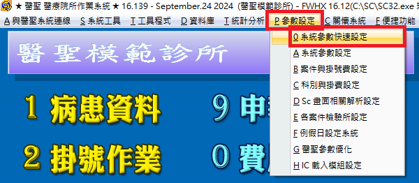 1. 開啟醫聖診療系統個人化參數編輯設定視窗>如下圖示,點選開啟『系統參數快速設定』功能