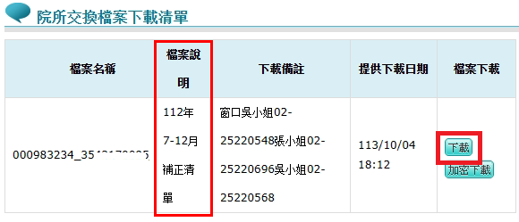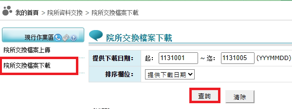 由「健保資訊網服務系統(VPN)」下載電子補正清單畫面: