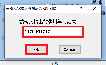接著出現如下圖視窗,可輸入同年度的區間日期,如11207-11212或11301-11312