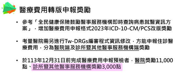 -新增獎勵項目:2023年版ICD-10-CM/PCS改版預檢獎勵