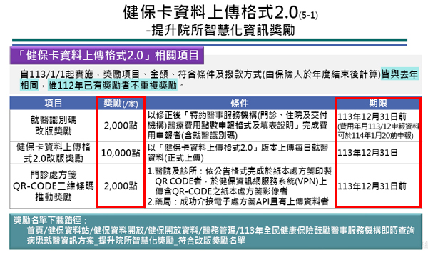 -調整獎勵項目:健保卡資料上傳格式2.0/費用申報就醫識別碼改版獎勵