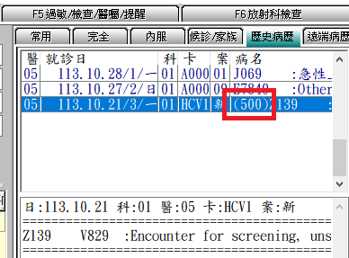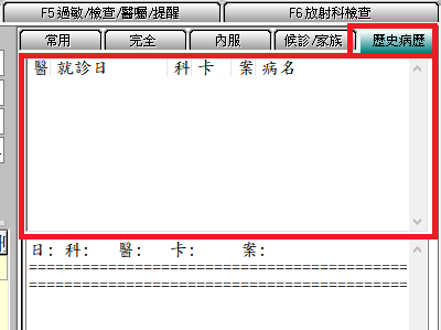 Q:『F3診療作業』畫面右側『歷史病歷』區如何顯示較久遠之病歷內容