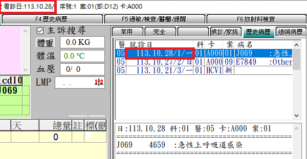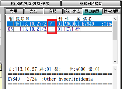 Q:歷史病歷區可否顥示看診日為星期幾或當日進入顯示當日歷史病歷