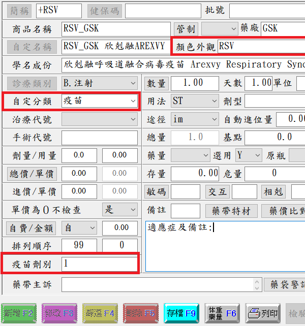 例如:欣剋融呼吸道融合病毒疫苗(GSK) =>『顏色外觀』填入「 RSV」