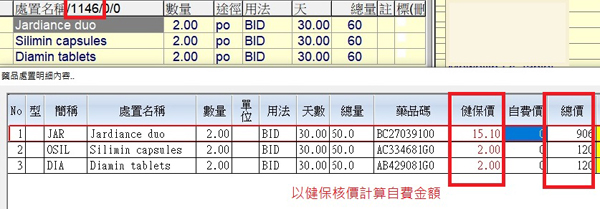 處置內容開立健保核價計算總用藥金額為1146