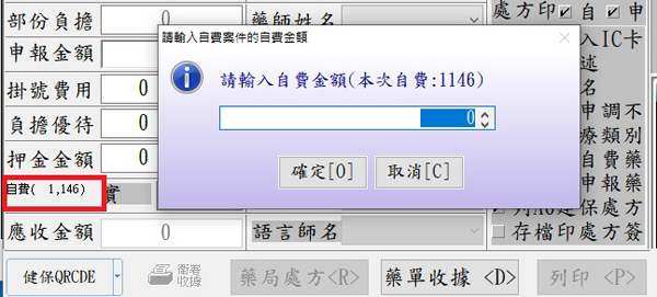 生效條件為:自費案件,藥品資料內自費金額為零(未設定)時,自動以健保金額為加總金額