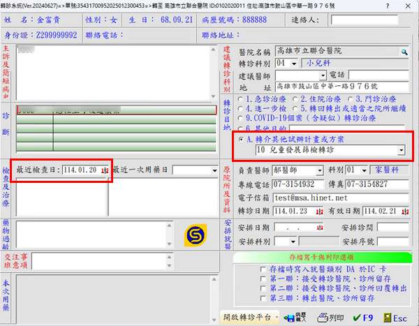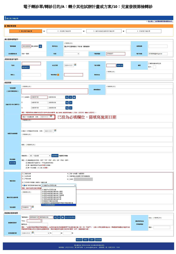 有關開立電子轉診單目的為「10.兒童發展篩檢轉診」勾稽「兒童發展篩檢異常個案轉介獎勵費」之相關必填欄位一案