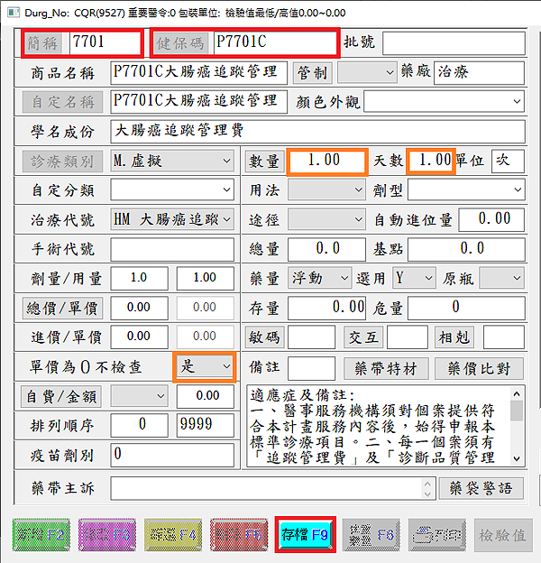 批價作業:按下『存檔F9』完成【本計畫採先申報符合支付標準後核付,因此申請時點數為0】