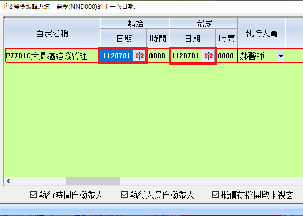 *本計畫申報代碼須填報醫令執行起迄日,系統會自動跳出重要醫令編輯系統輸入視窗
