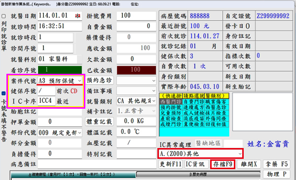 點選『癌症追蹤計劃』,於「IC異常處理」欄位點選『Z000 』,再按下『存檔F9』